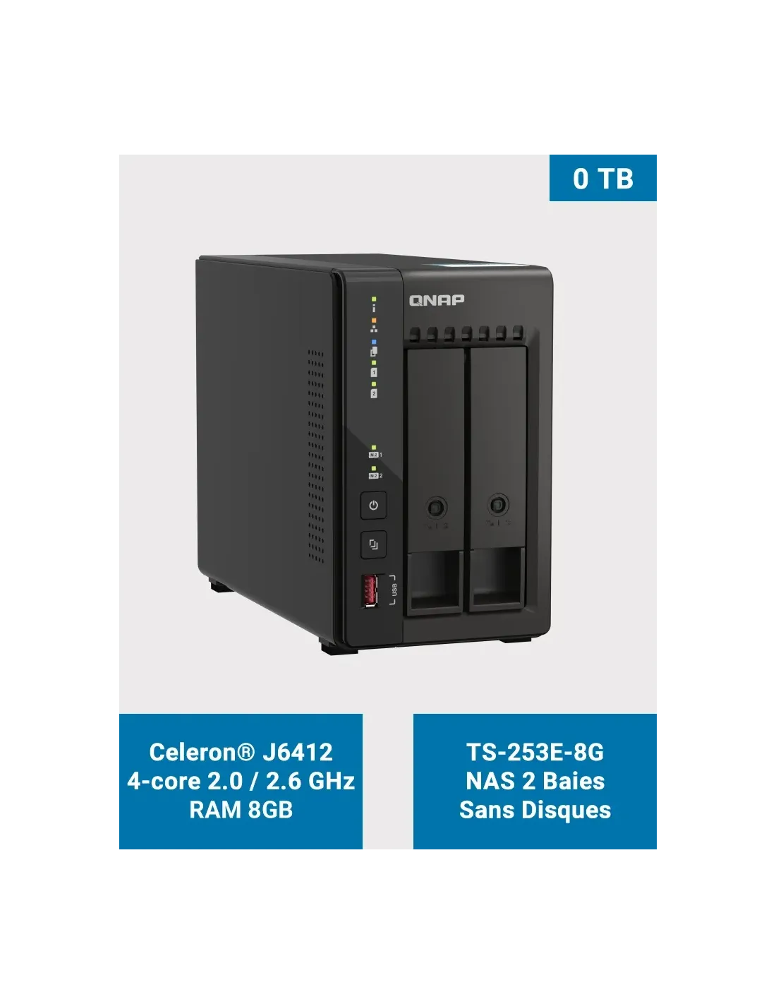 El QNAP TS-253E-8G es un servidor NAS de 2 bahías sin discos, diseñado para profesionales y usuarios exigentes.