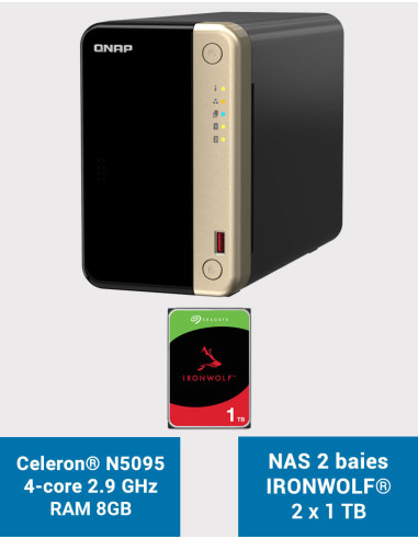 QNAP TS-264 8GB Servidor NAS 2 bahías IRONWOLF 2TB (2x1TB)