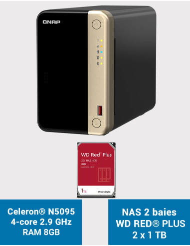 QNAP TS-264 8GB Servidor NAS 2 bahías WD RED PLUS 2TB (2x1TB)