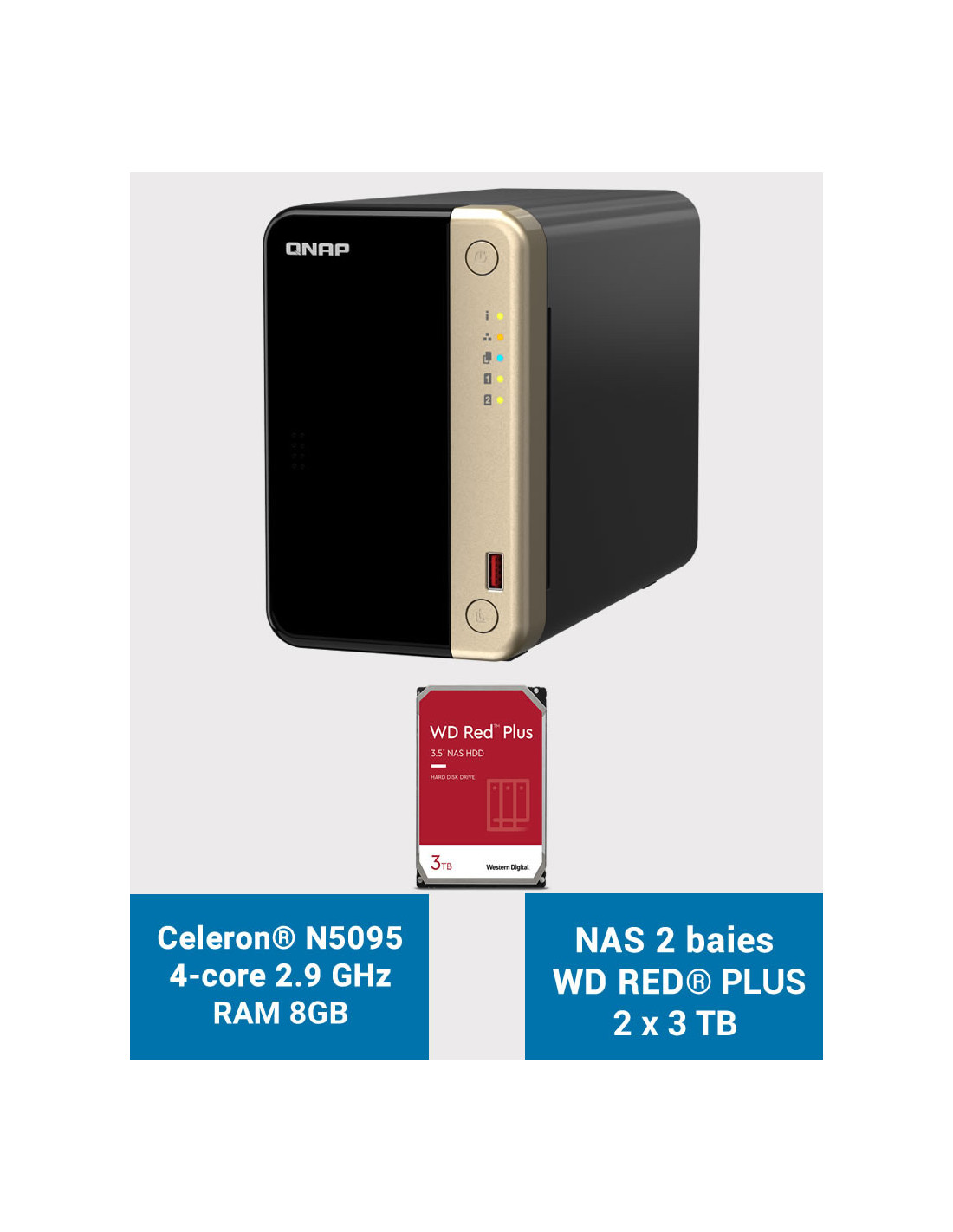 - 2 unidades WD RED PLUS de 3TB (3 años de garantía del fabricante)