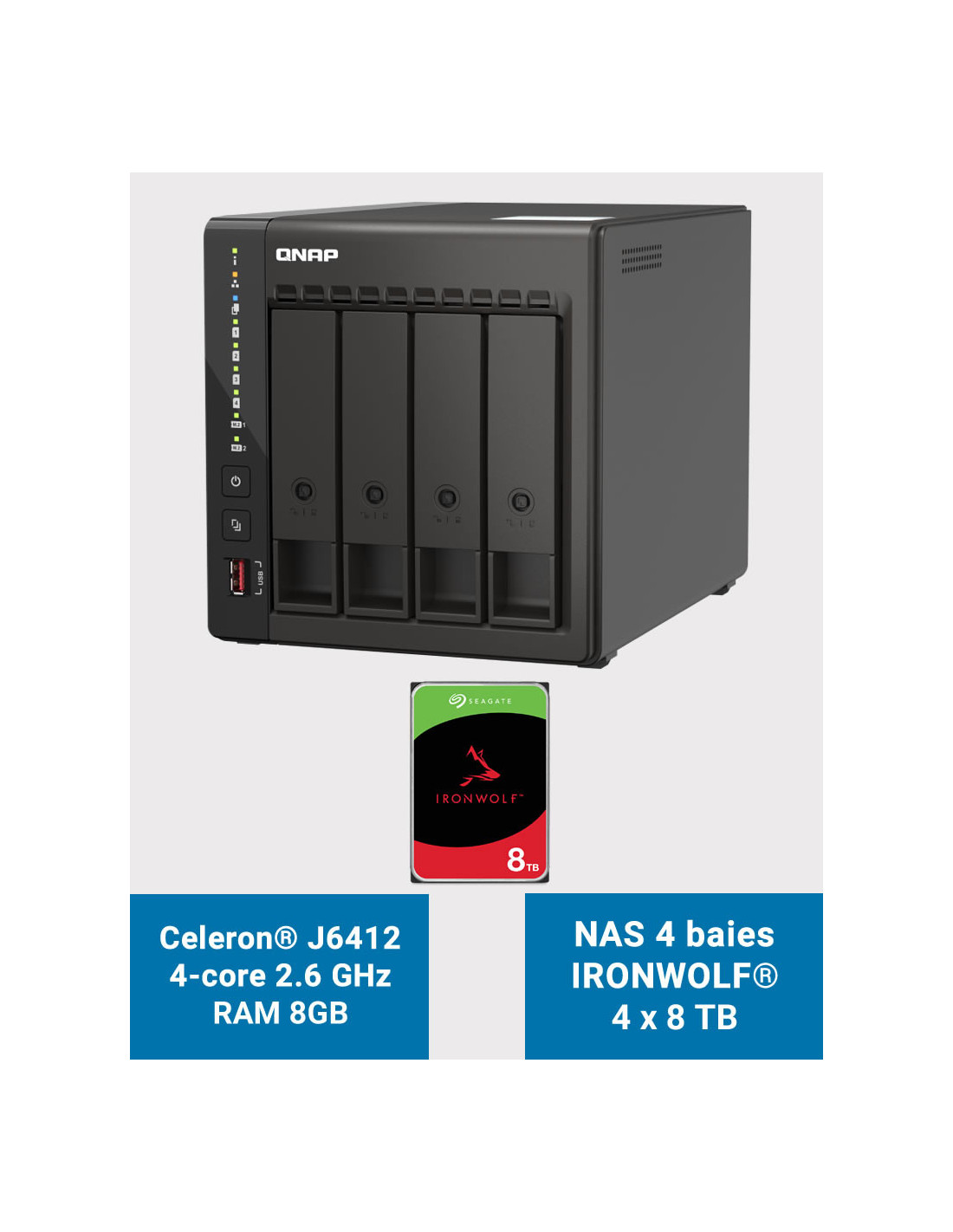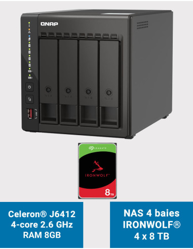 QNAP TS-453E 8GB Servidor NAS 4 bahías IRONWOLF 32TB (4x8TB)