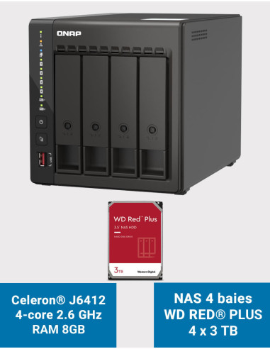 QNAP TS-453E 8GB Servidor NAS 4 bahías WD RED PLUS 12TB (4x3TB)