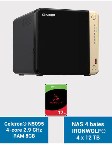QNAP TS-464 8GB Servidor NAS 4 bahías IRONWOLF 48TB (4x12TB)