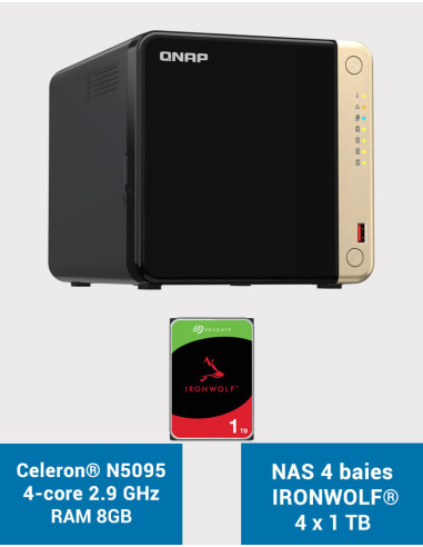 - 4 unidades Seagate IronWolf de 1TB (3 años de garantía del fabricante)
