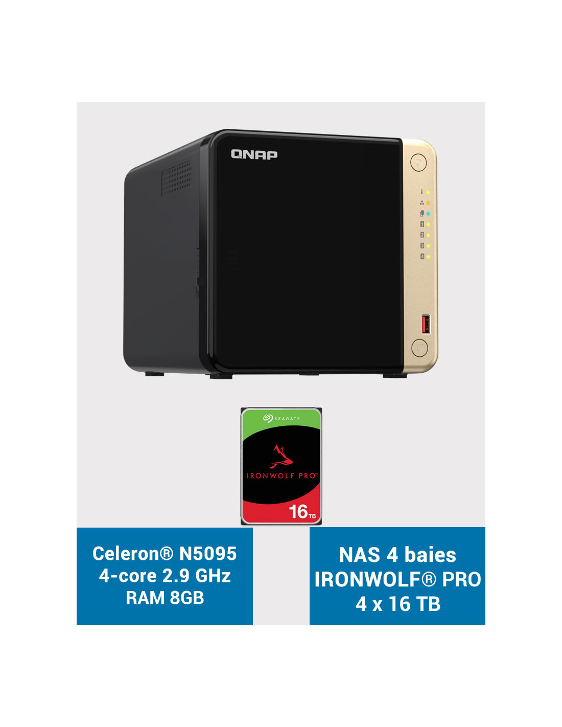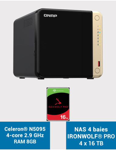 QNAP TS-464 8GB Servidor NAS 4 bahías IRONWOLF PRO 64TB (4x16TB)