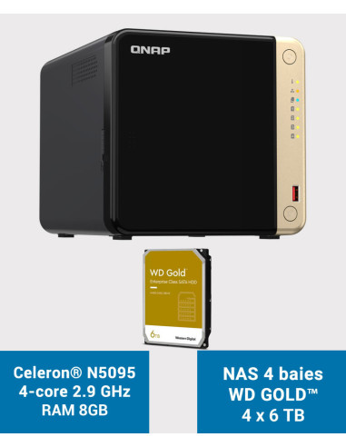 QNAP TS-464 8GB Servidor NAS 4 bahías WD GOLD 24TB (4x6TB)