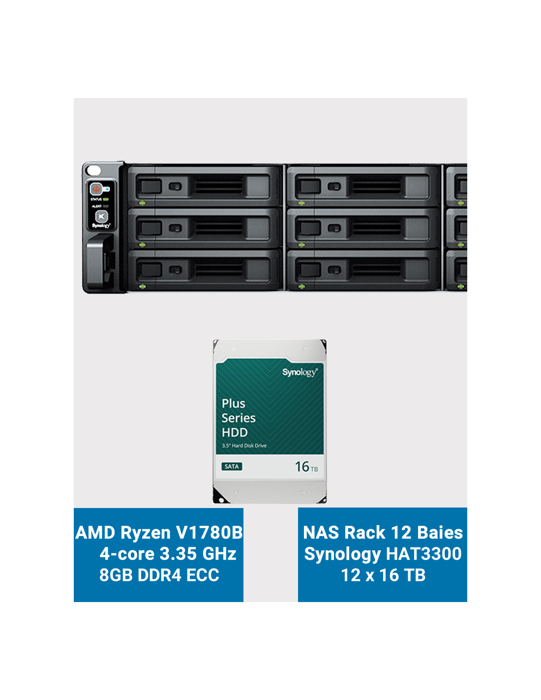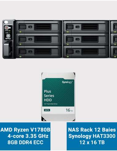 - 12 unidades Synology HAT3300 de 16TB (3 años de garantía del fabricante)