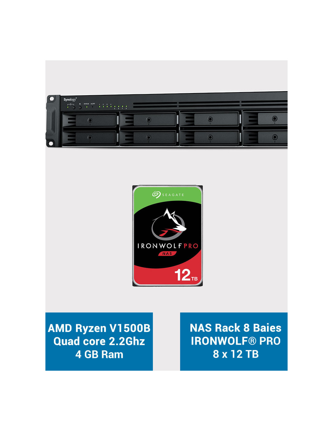 - 8 unidades Seagate IRONWOLF PRO de 12TB (5 años de garantía del fabricante)