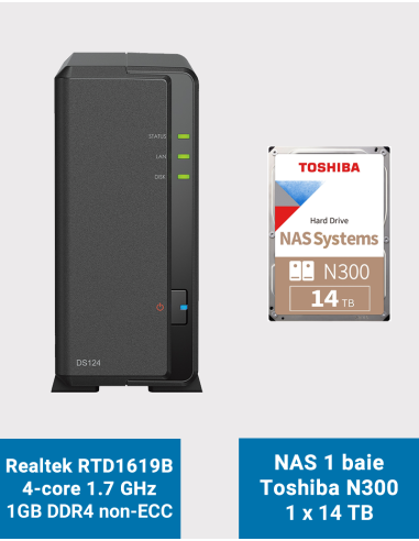 Synology DiskStation DS124 Servidor NAS Toshiba N300 14TB (1x14TB)