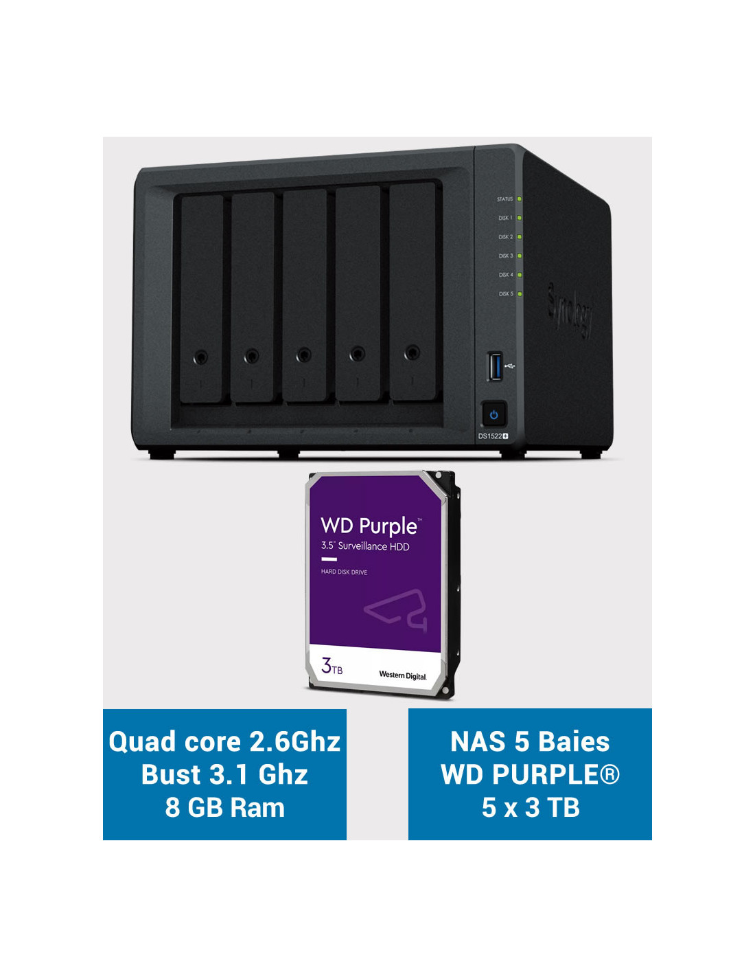 - 5 unidades WD PURPLE de 3TB (3 años de garantía del fabricante)