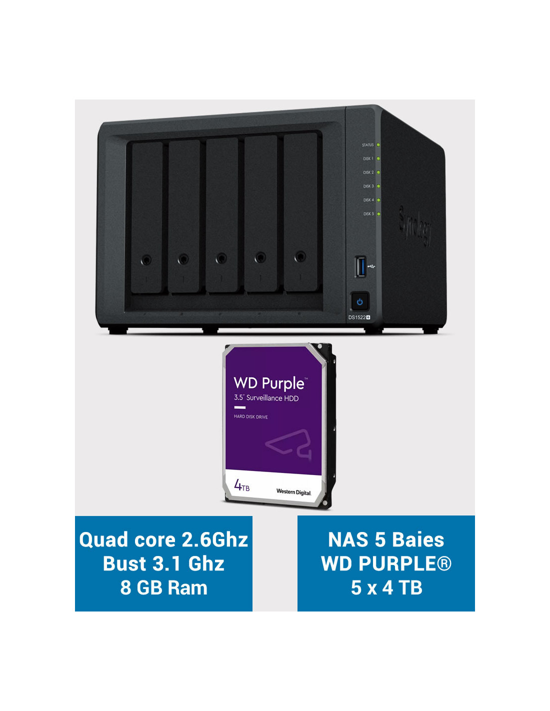 SYNOLOGY DiskStation DS1522+ 8GB Capacidad de 20TB para sistema de videovigilancia
