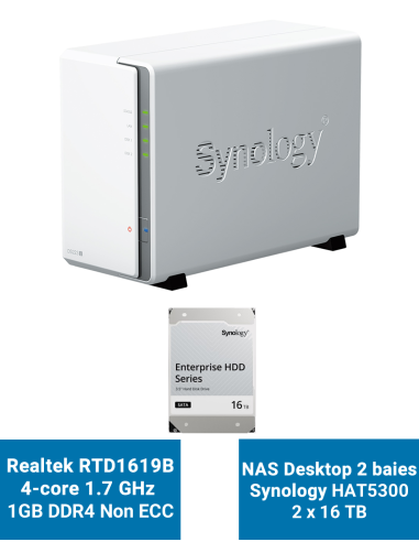 Synology DiskStation DS223J Servidor NAS HAT5300 32TB (2x16TB)