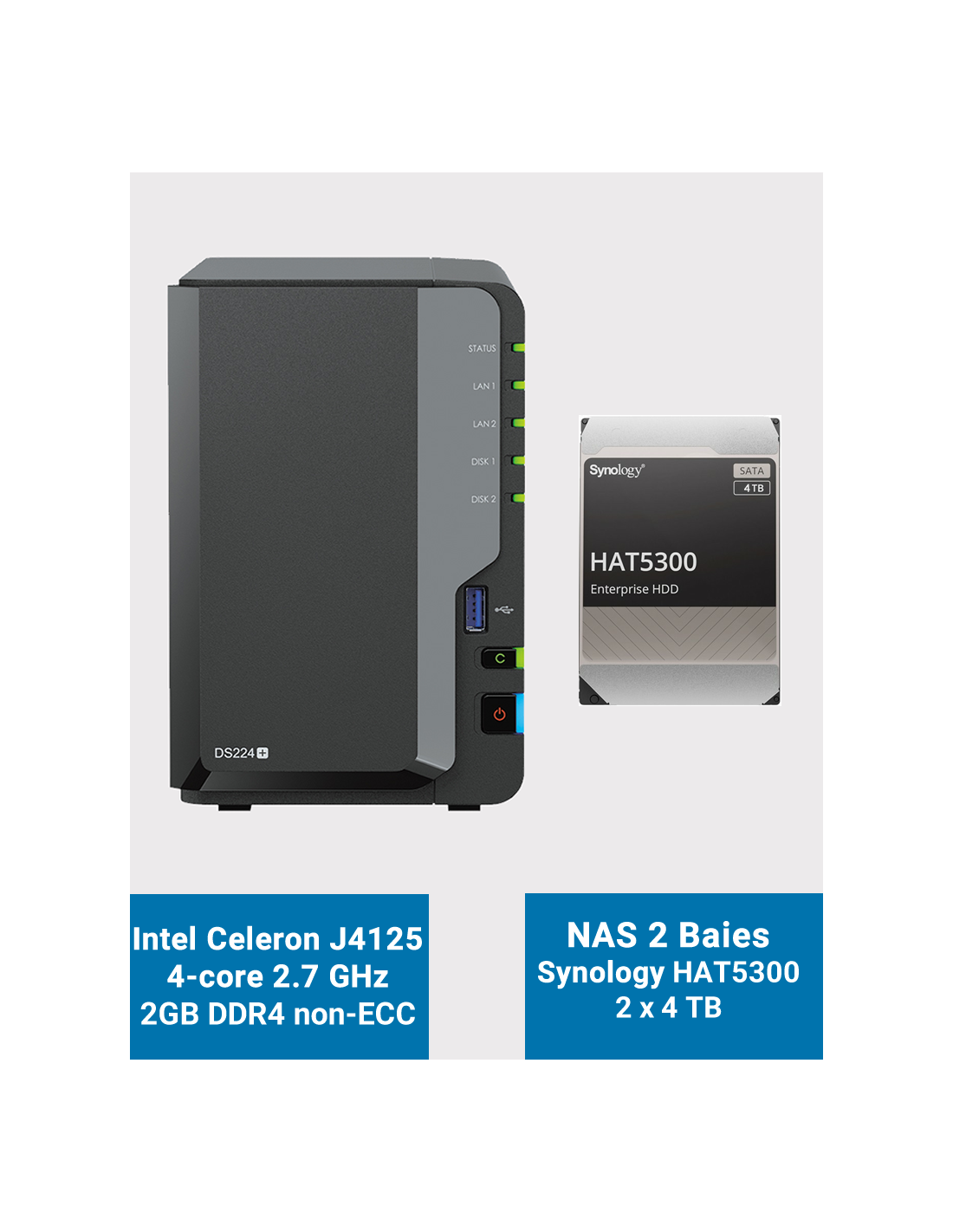 Synology DiskStation DS224+ 2GB Servidor NAS HAT5300 8TB (2x4TB)