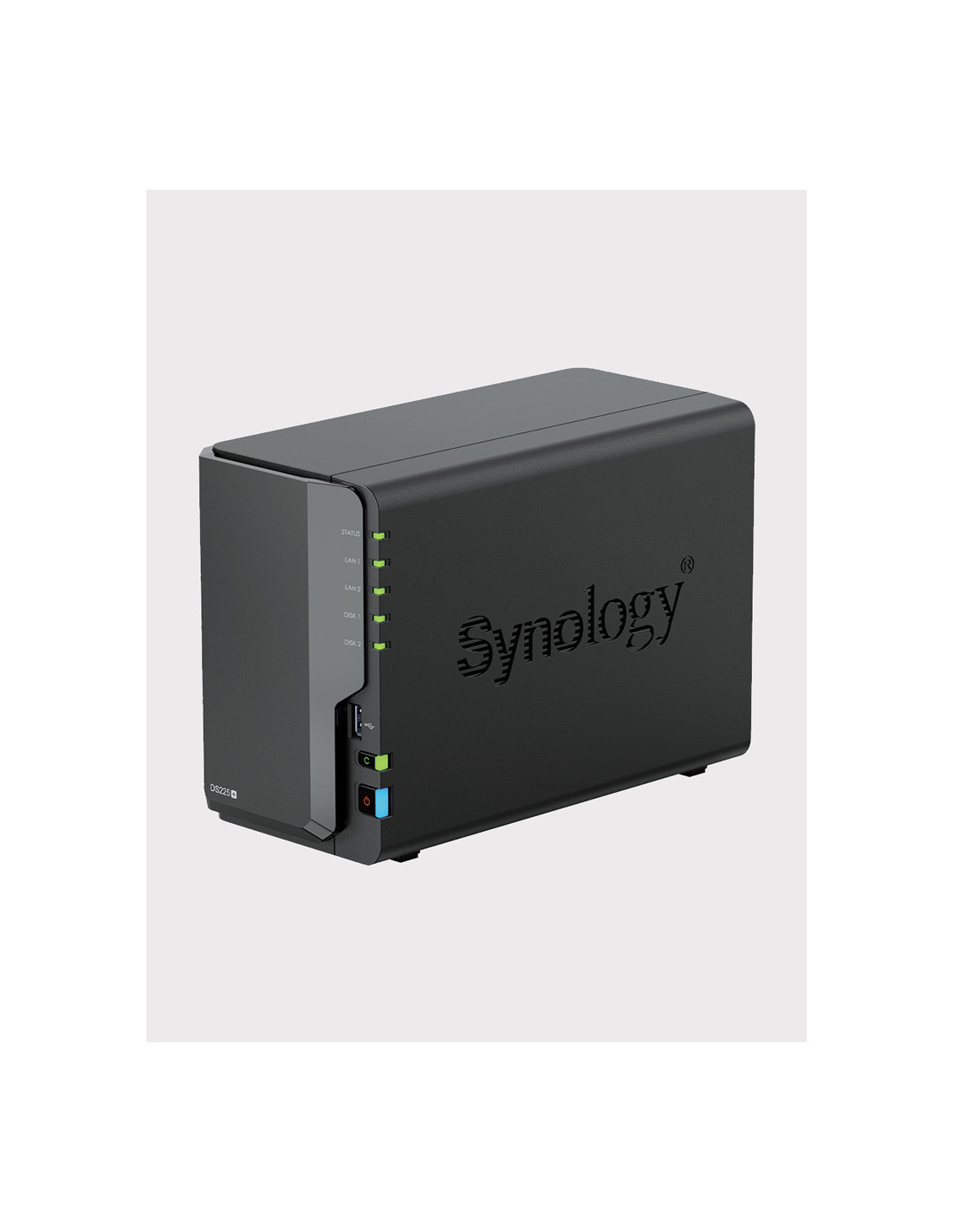 El Synology DS225+ es un NAS compacto de 2 bahías, entregado con 2 discos Synology HAT3300 de 16 TB, ofreciendo una capacidad total de 32 TB brutos.