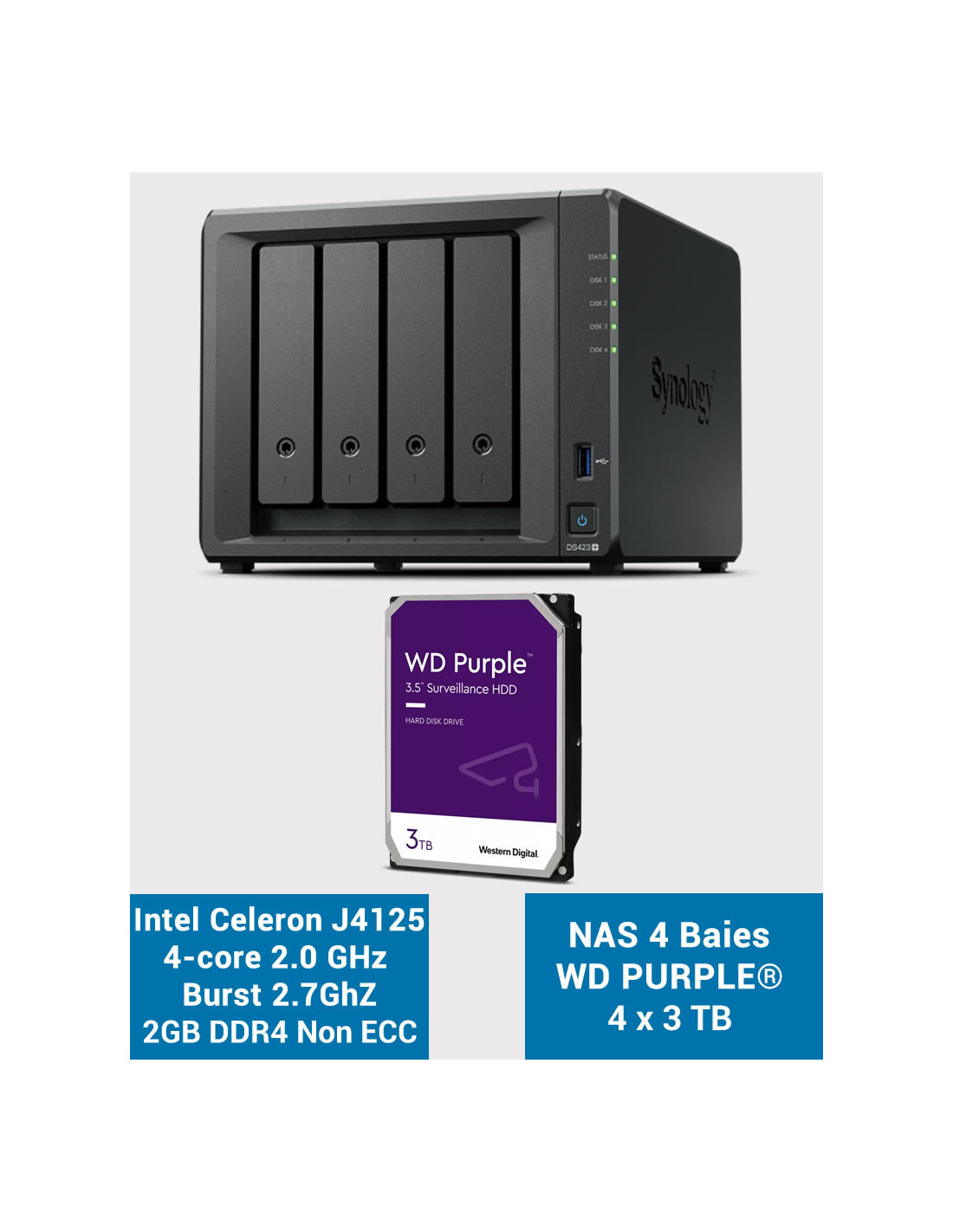 Synology DS423+ 2GB Servidor NAS WD PURPLE 12TB (4x3TB)