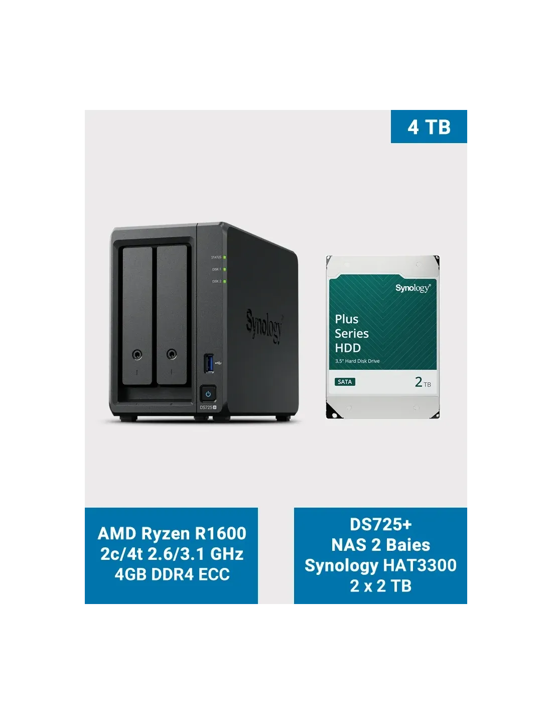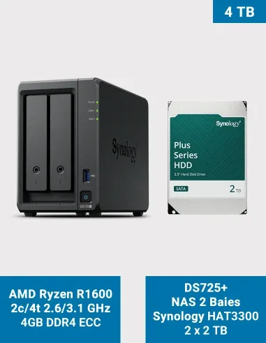 Synology DS725+ NAS de 2 bahías con 2× 2 TB HAT3300 – 4 TB