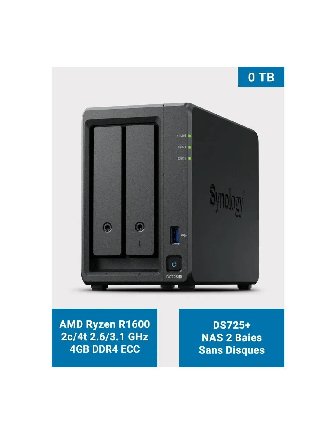 Synology DS725+ NAS de 2 bahías – Chasis sin discos