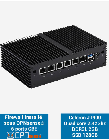 Firewall OPNsense Q1x Celeron J1900 6 ports Gigabit 2Go SSD 120Go