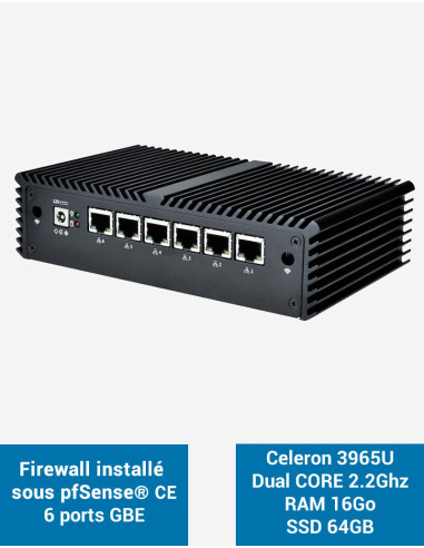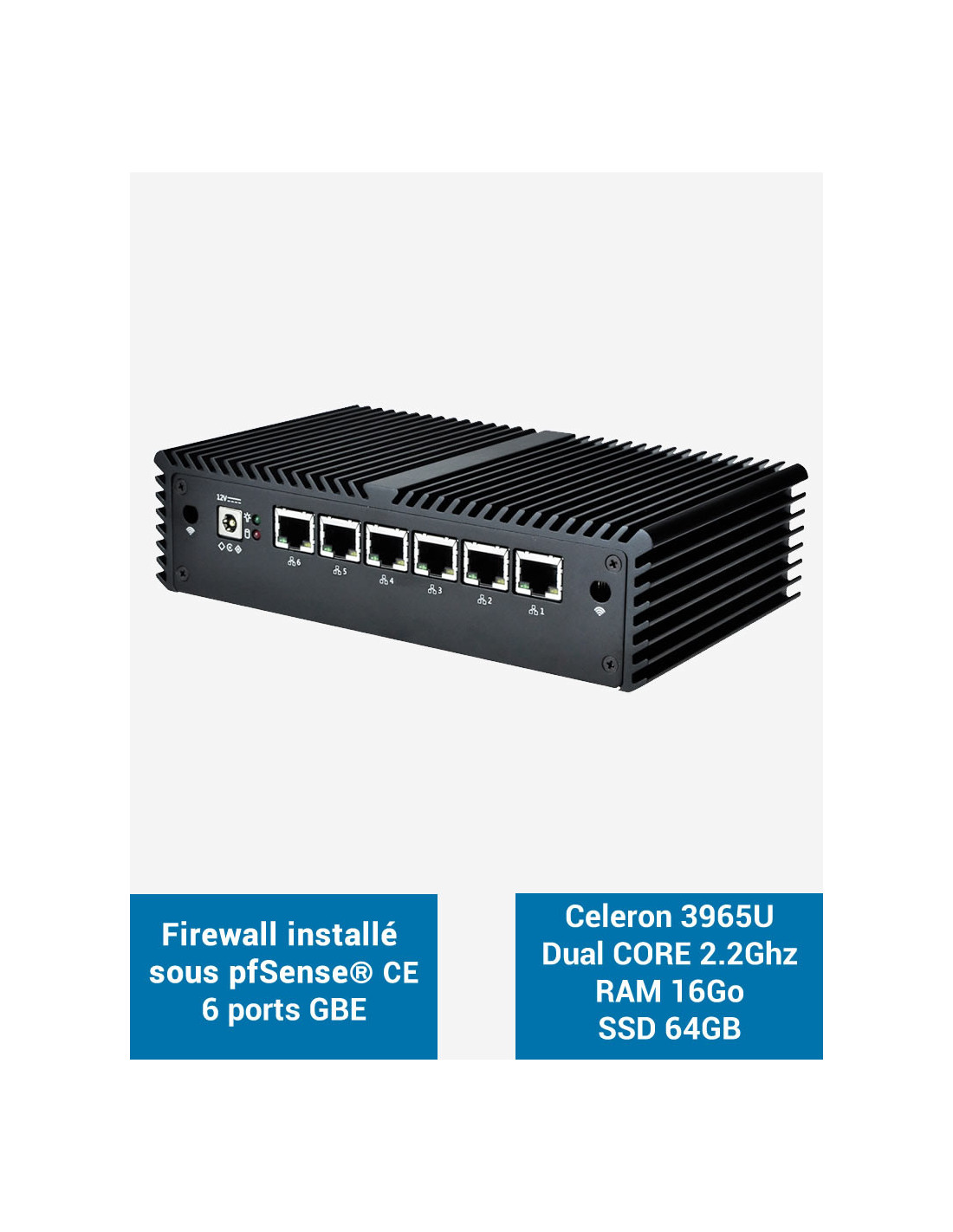 Firewall pfSense Q5x Intel i3 6100U 6 ports Gigabit 16Go SSD 60Go