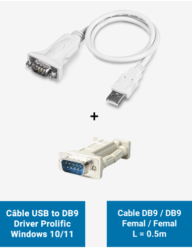 Câble USB vers DB9 Male, avec chipset Prolific compatible sans driver avec Windows 8 / 10 ou 11.