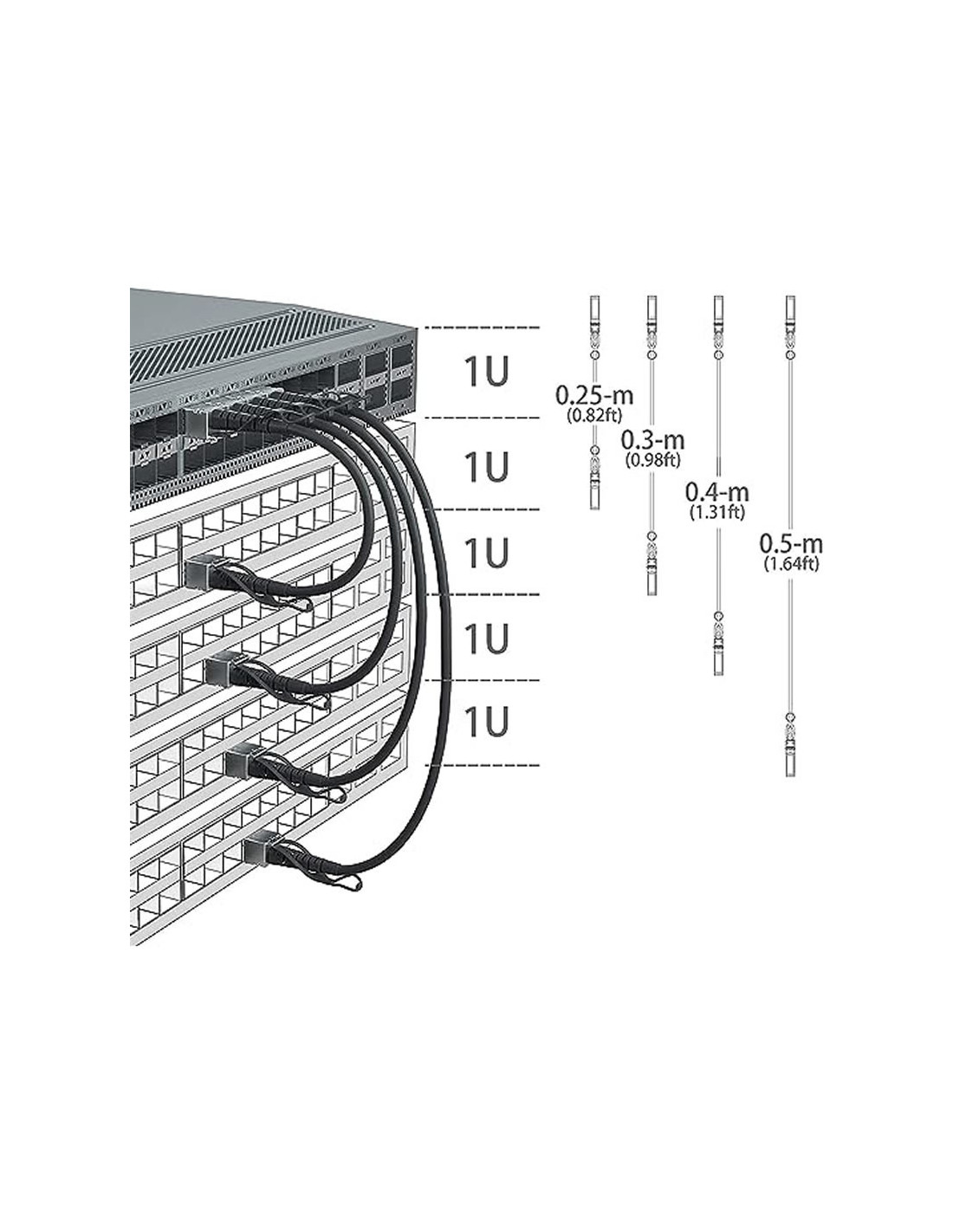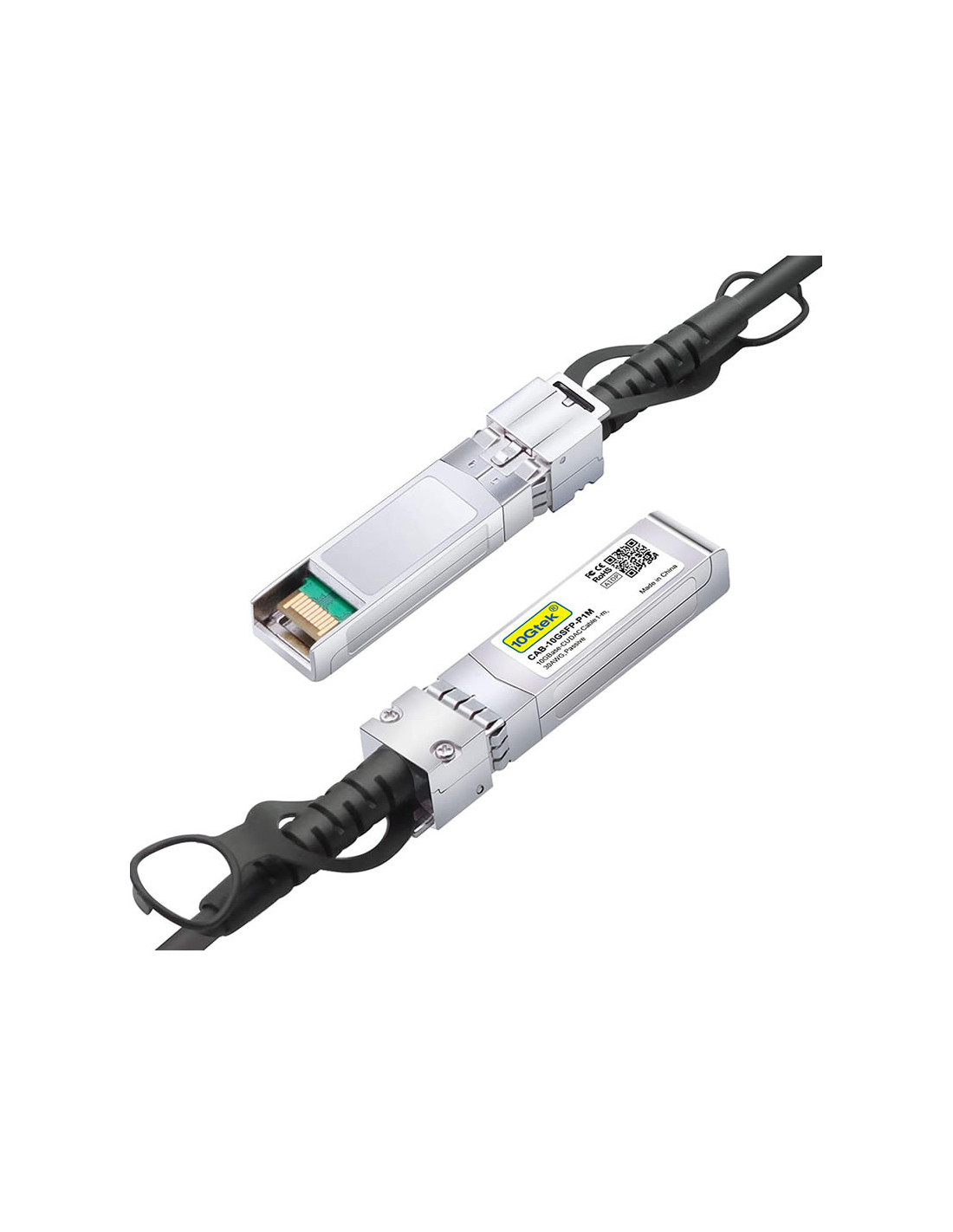 Le câble twinax passif SFP+ DAC (Direct Attach Copper) convient à la transmission sur de très courtes distances et offre une solution très rentable et à faible consommation d'énergie pour se connecter à l'intérieur des racks et entre les racks adjacents. Le câble passif SFP+ twinax permet une transmission de données série jusqu'à 10,3 Gb/s, ce qui constitue un choix peu coûteux pour les applications à très courte portée de 10 GbE ou 1-8G Fibre Channel. Le DAC SFP+ qui remplace deux modules optiques et une fibre optique connecteurisée par un assemblage de câbles en cuivre twinaxiaux offre une solution Ethernet 10 Gigabit à densité plus élevée.