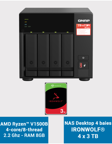 Qnap TS-473A 8GB Serveur NAS 4 baies IRONWOLF 12To (4x3To)