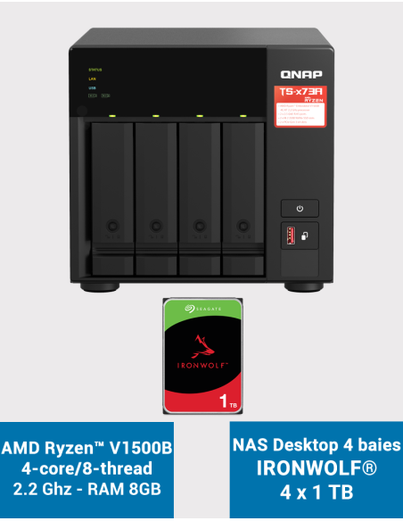 - 4 disques Seagate IRONWOLF 1To (Garantie constructeur 3 ans)