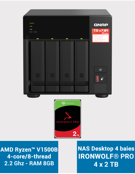 Qnap TS-473A 8GB Serveur NAS 4 baies IRONWOLF PRO 8To (4x2To)