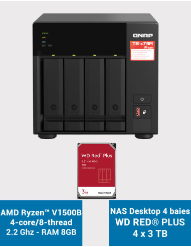 Qnap TS-473A 8GB Serveur NAS 4 baies WD RED PLUS 16To (4x4To)