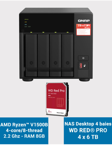 Qnap TS-473A 8GB Serveur NAS 4 baies WD RED PRO 24To (4x6To)