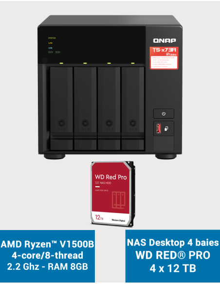 Qnap TS-473A 8GB Serveur NAS 4 baies WD RED PRO 48To (4x12To)
