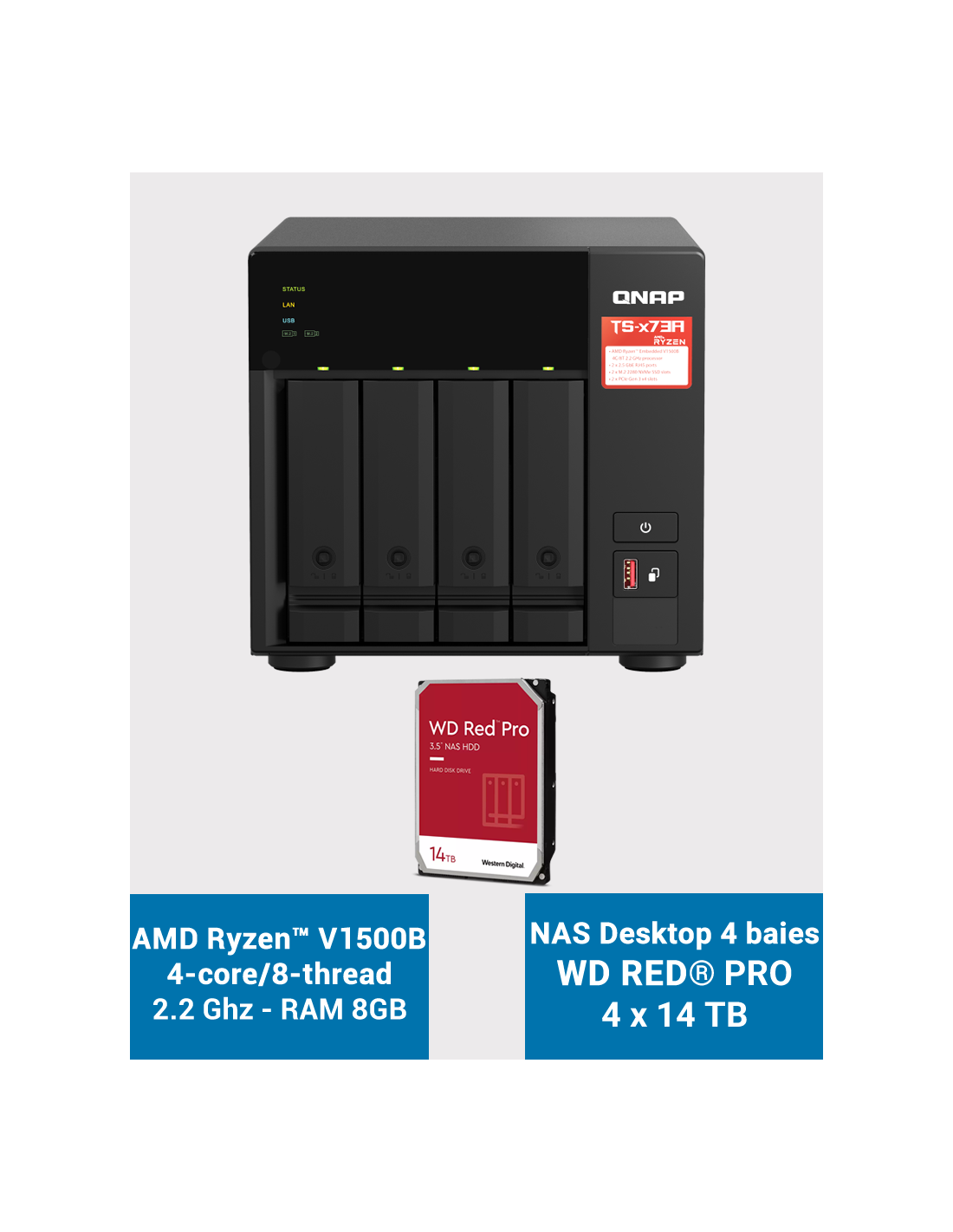Qnap TS-473A 8GB Serveur NAS 4 baies WD RED PRO 56To (4x14To)