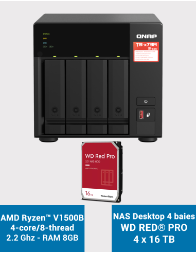 Qnap TS-473A 8GB Serveur NAS 4 baies WD RED PRO 64To (4x16To)