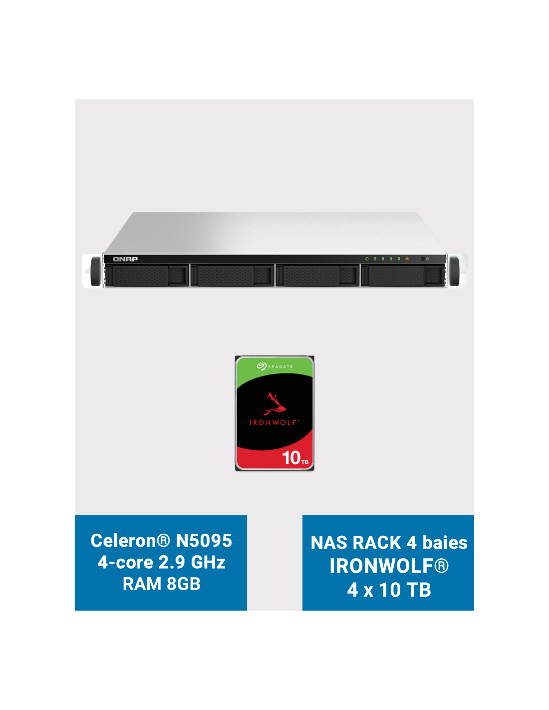QNAP TS-464U 8GB Serveur NAS Rack 1U 4 baies IRONWOLF 40To (4x10To)