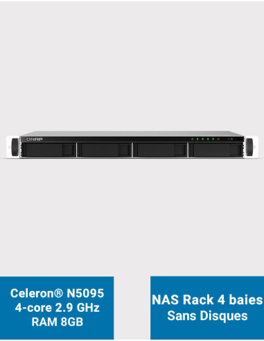 NAS Rack 1U 4 baies - Intel® Celeron® N5095 à 2Ghz burst 2.9Ghz - Mémoire 8Go