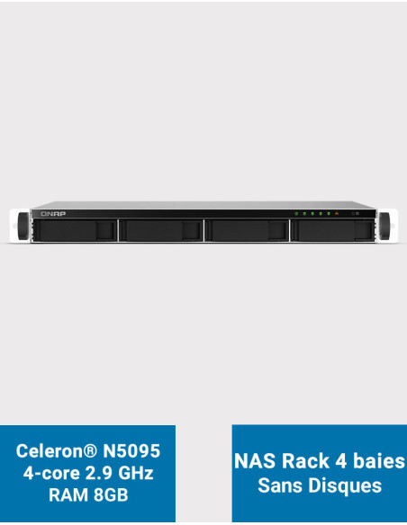NAS Rack 1U 4 baies -  Intel® Celeron® N5095 à 2Ghz burst 2.9Ghz - Mémoire 8Go