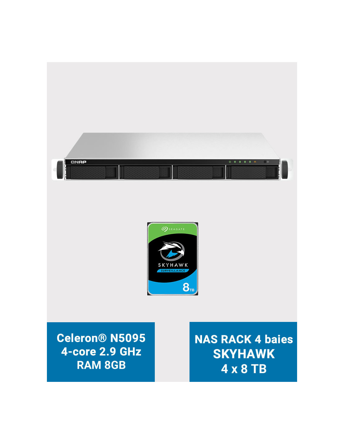 QNAP TS-464U 8GB Serveur NAS Rack 1U 4 baies SKYHAWK 32To (4x8To)