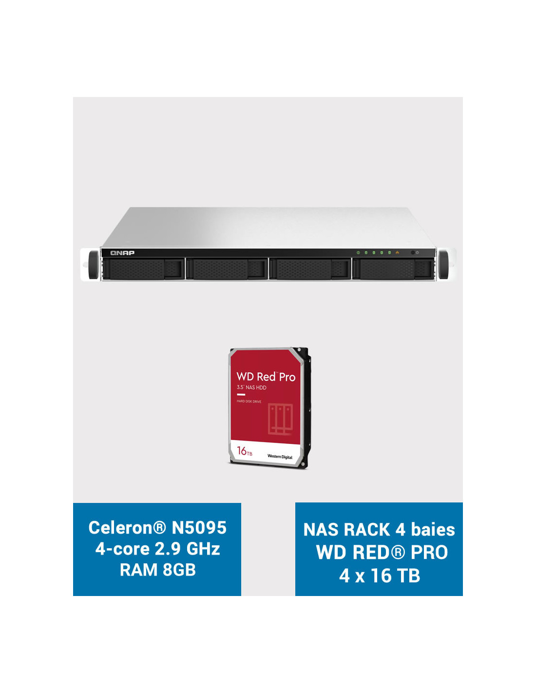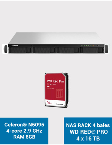 QNAP TS-464U 8GB Serveur NAS Rack 1U 4 baies WD RED PRO 64To (4x16To)