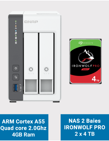 - 2 disques Seagate IronWolf Pro 4To (Garantie constructeur 5 ans)