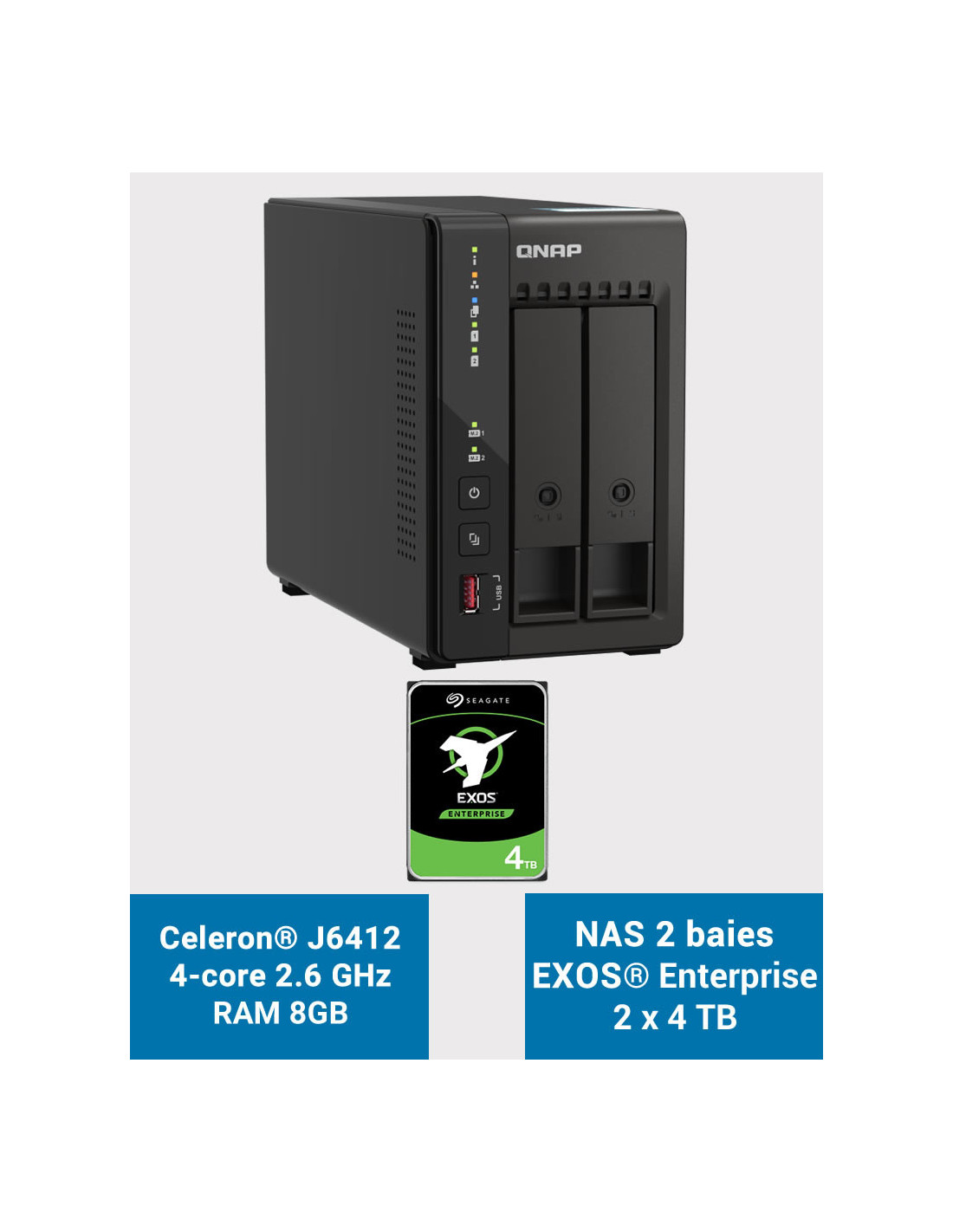 QNAP TS-253E 8GB Serveur NAS 2 baies EXOS Enterprise 8To (2x4To)