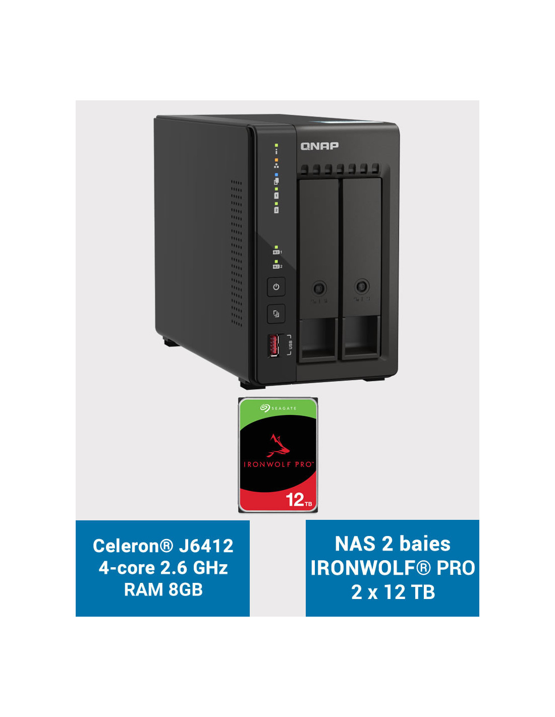 QNAP TS-253E 8GB Serveur NAS 2 baies IRONWOLF PRO 24To (2x12To)