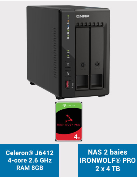 QNAP TS-253E 8GB Serveur NAS 2 baies IRONWOLF PRO 8To (2x4To)