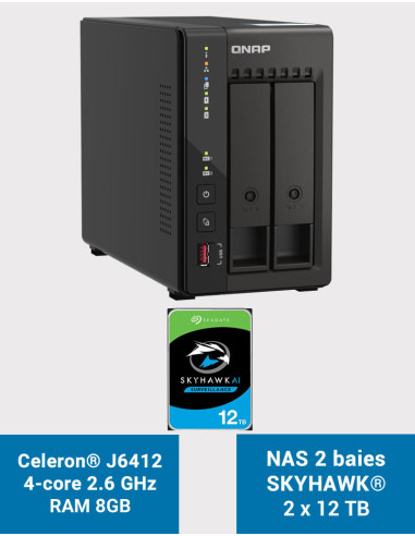 QNAP TS-253E 8GB Serveur NAS 2 baies SKYHAWK 24To (2x12To)