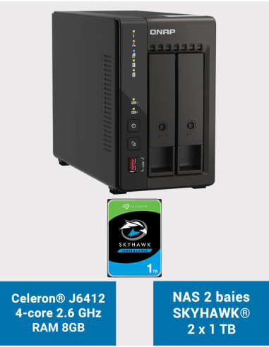 QNAP TS-253E 8GB Serveur NAS Capacité de 2To pour système de vidéosurveillance