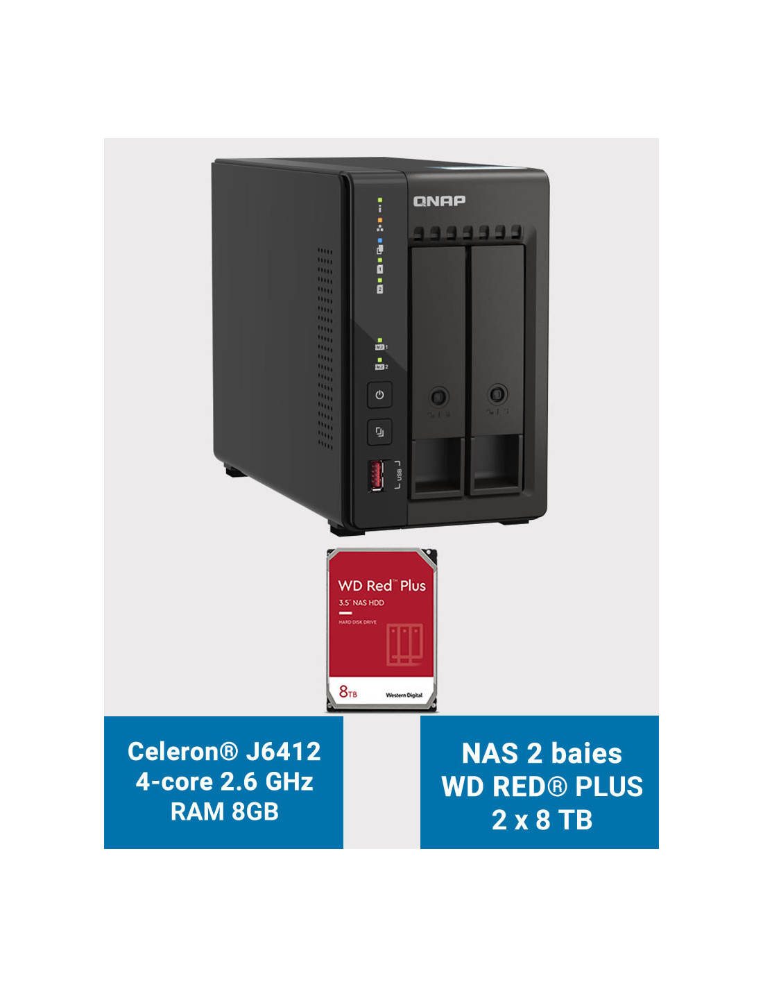 QNAP TS-253E 8GB Serveur NAS 2 baies WD RED PLUS 16To (2x8To)