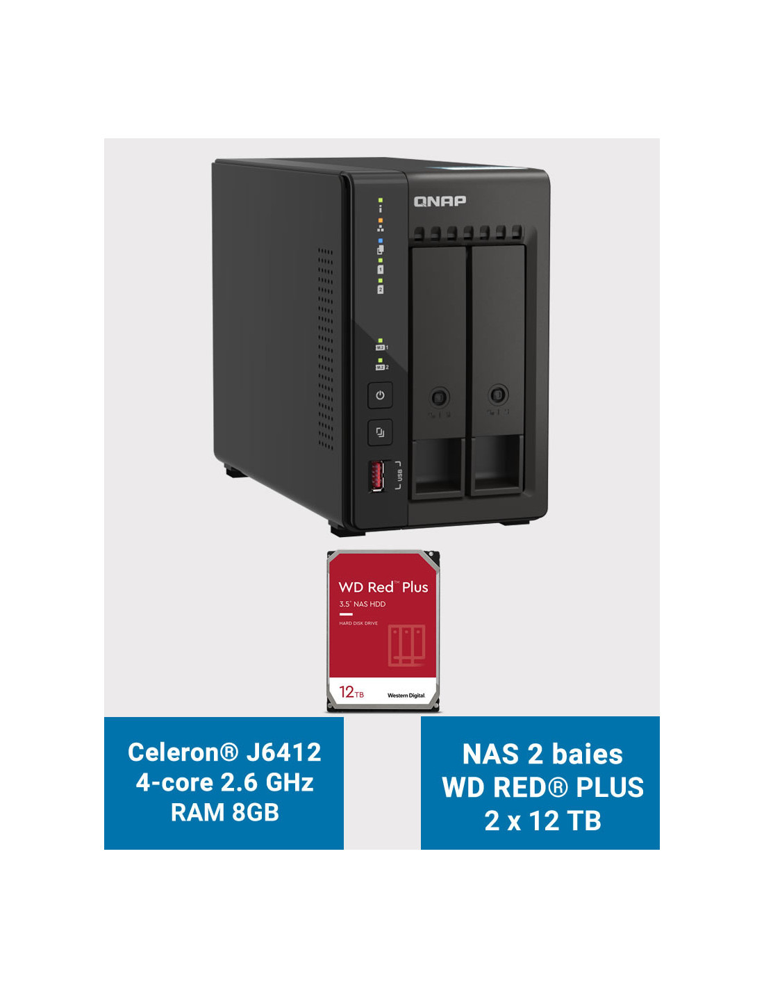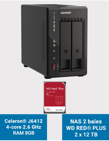 QNAP TS-253E 8GB Serveur NAS 2 baies WD RED PLUS 24To (2x12To)