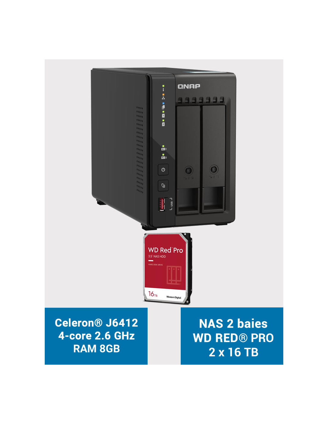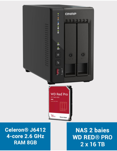 QNAP TS-253E 8GB Serveur NAS 2 baies WD RED PRO 32To (2x16To)