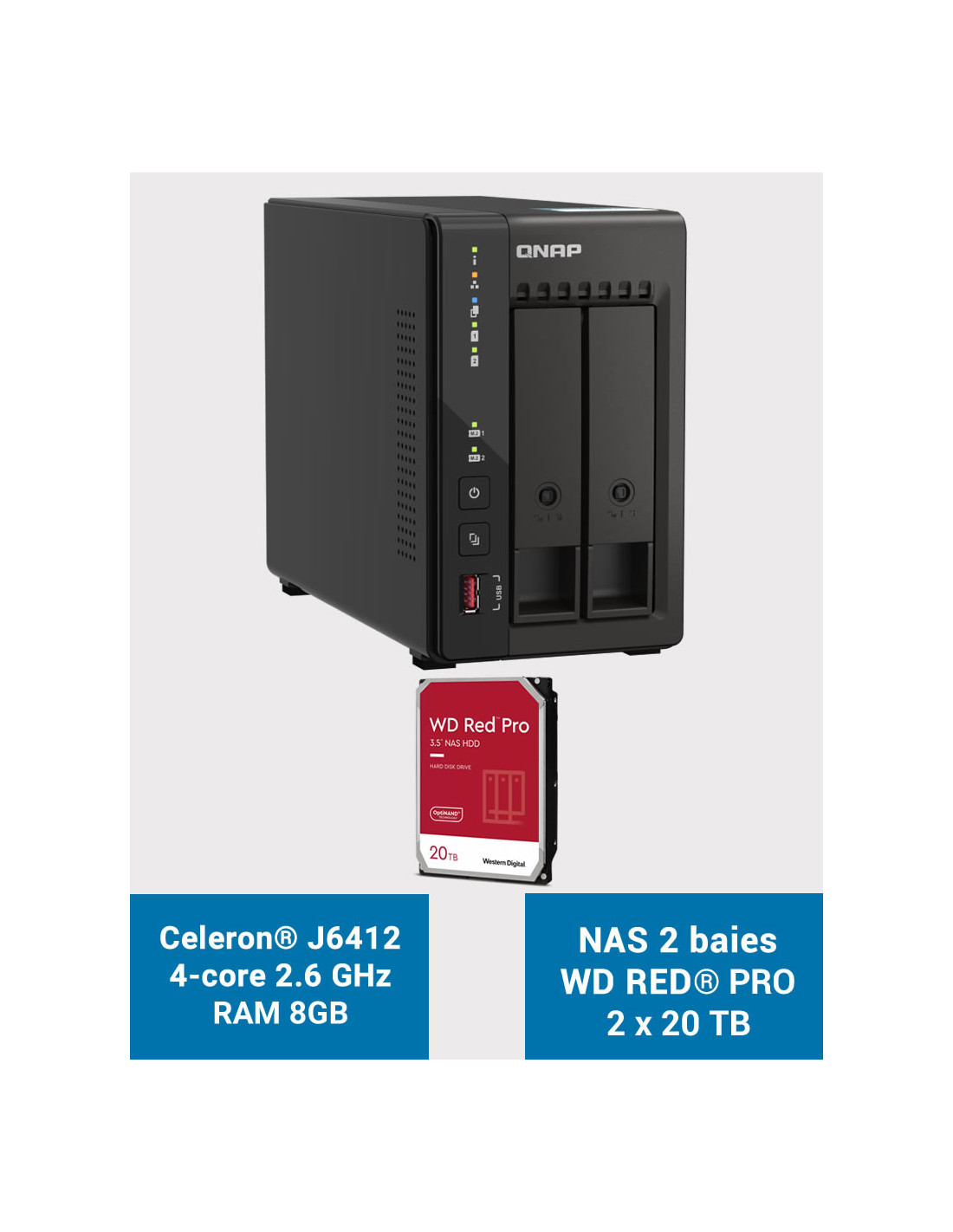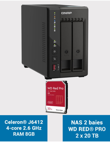 QNAP TS-253E 8GB Serveur NAS 2 baies WD RED PRO 40To (2x20To)