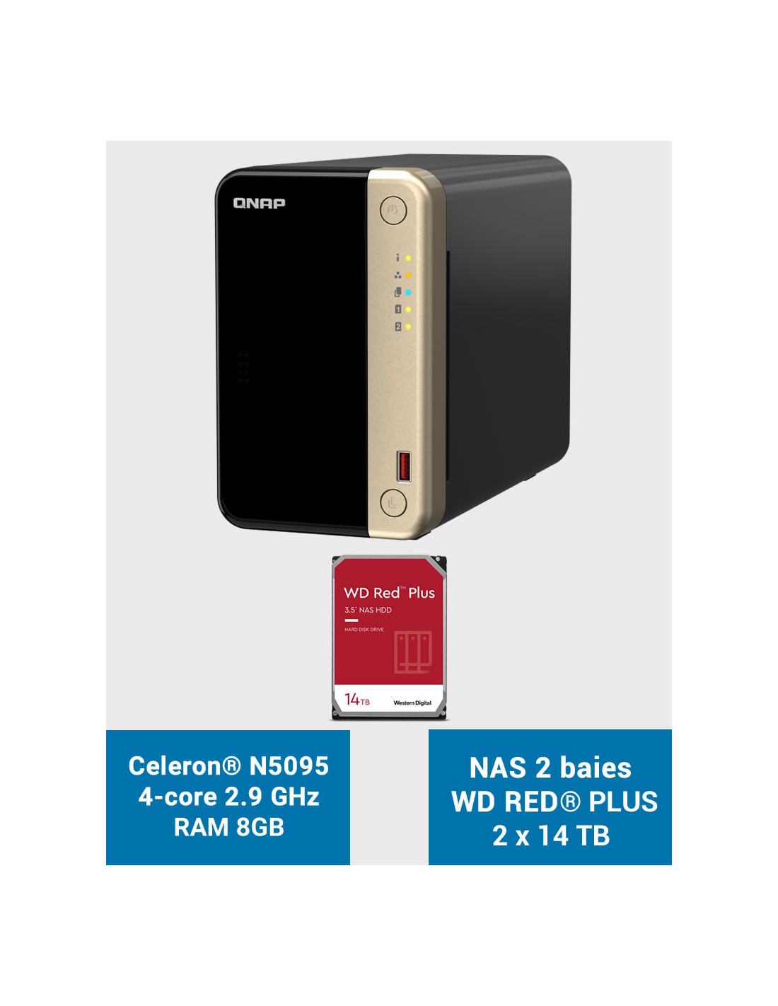 - 2 disques WD RED PLUS 14To (Garantie constructeur 3 ans)