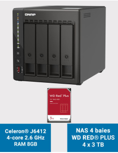 NAS Tour 4 baies - Intel® Celeron® J6412 à 2Ghz burst 2.6Ghz - Mémoire 8Go